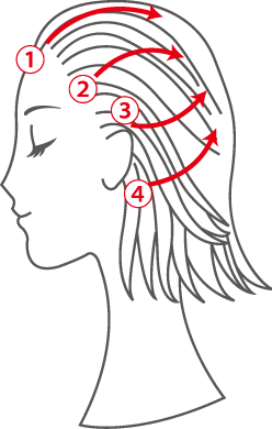 頭皮にしっかり当たるように